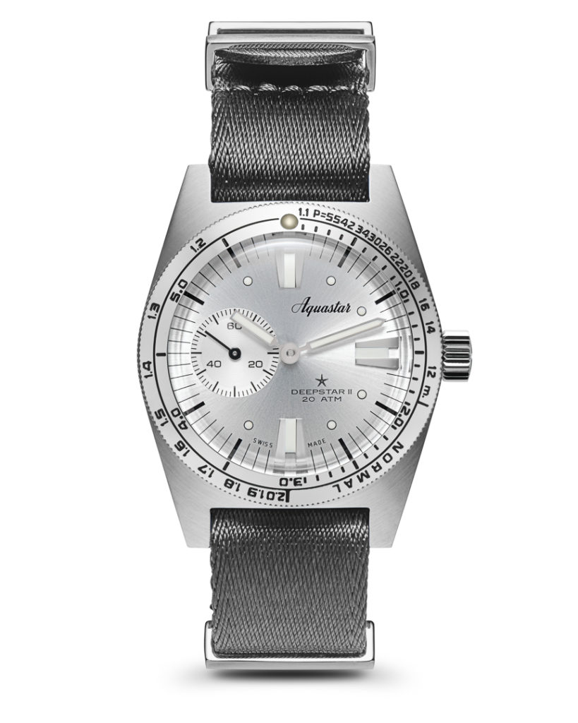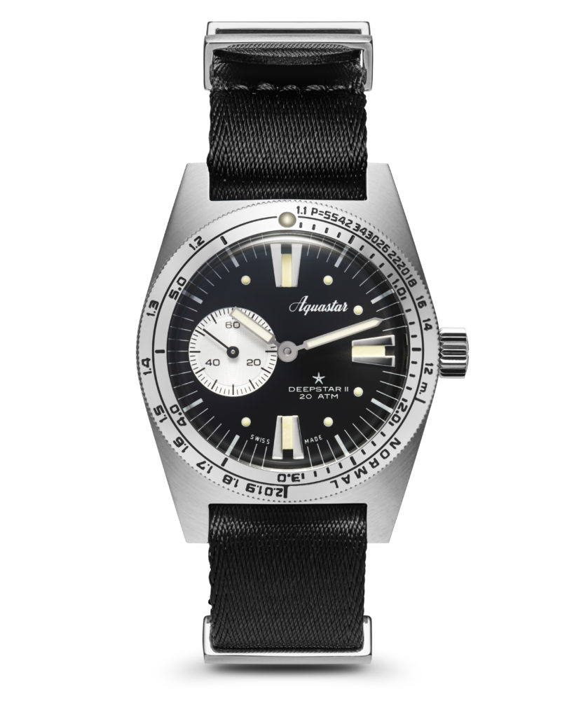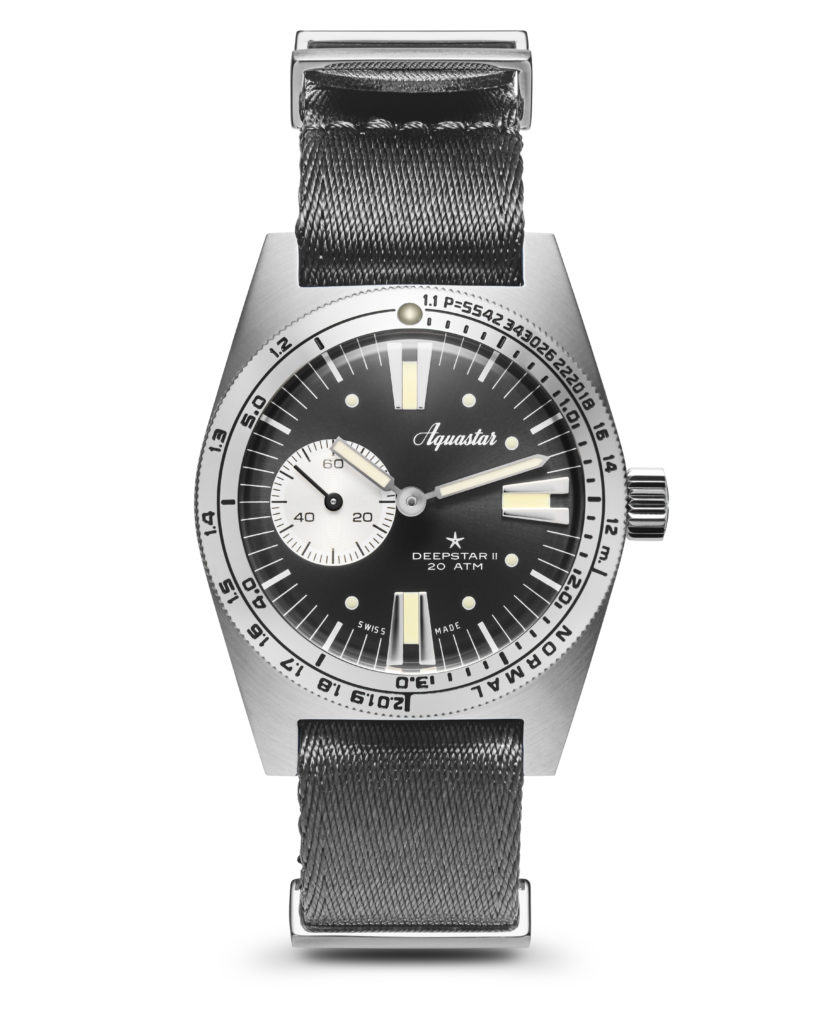 In order to adhere to the original design lines, the Deepstar II is time only 3 hand dive watch, where the minute counter sub dial of the original Deepstar has now become a seconds running indicator.