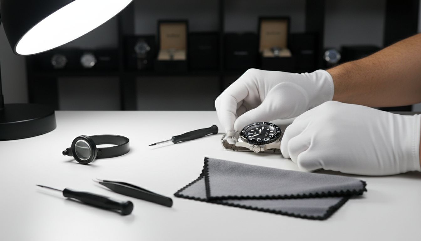 Antes de comenzar, necesitarás un conjunto específico de herramientas que te permitirán examinar cada detalle del reloj. La lista básica incluye: una lupa de precisión con aumento de 10x, un paño de microfibra sin pelusa, un destornillador de relojero de punta fina, pinzas con punta de plástico, guantes de algodón sin pelusa y una superficie de trabajo limpia y bien iluminada. Es fundamental trabajar sobre una superficie blanca o de color claro que te permita identificar fácilmente pequeñas imperfecciones o cambios sutiles en el acabado del reloj.